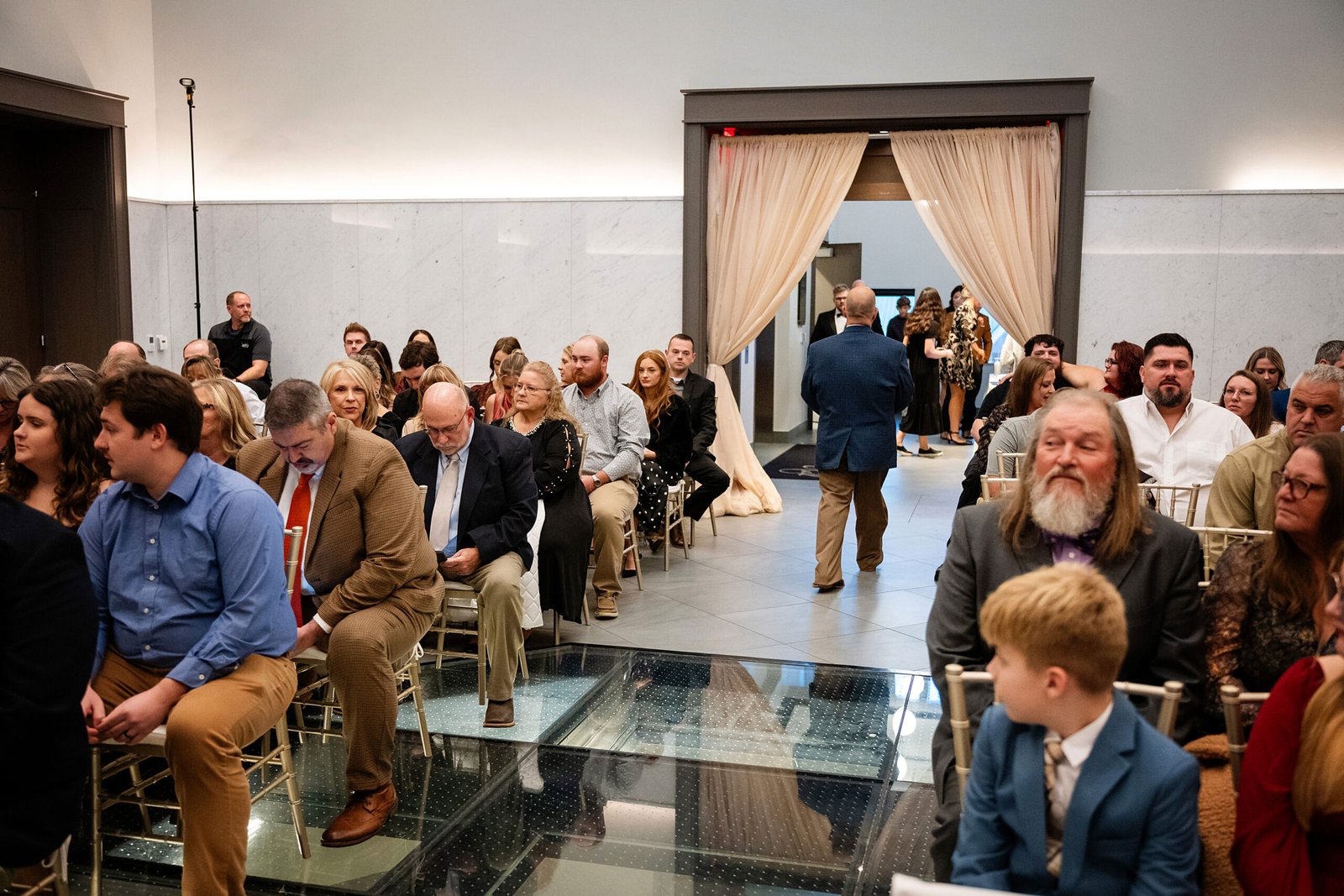 Two grand event rooms connected by the stunning rotunda offer flexible configurations for celebrations of all sizes. The neutral color palette provides a sophisticated canvas for any theme, while floor-to-ceiling windows bathe the space in natural light. Located at the corners of Main, Short, and Upper Streets, your guests will appreciate walkable access to downtown hotels, restaurants, and entertainment.
